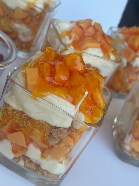 "Indulge in the sweetness of our Dessert Candle Collection! Crafted in elegant 12oz square jars, each candle is a mouthwatering masterpiece inspired by your favorite desserts. With over 60 hours of burn time, these candles don’t just look delicious—they fill your space with irresistible scents that create a cozy and inviting atmosphere. Our dessert candles are hand-poured using soy wax, making them a treat for both the eyes and the senses. Too beautiful to burn, but too tempting to resist!"